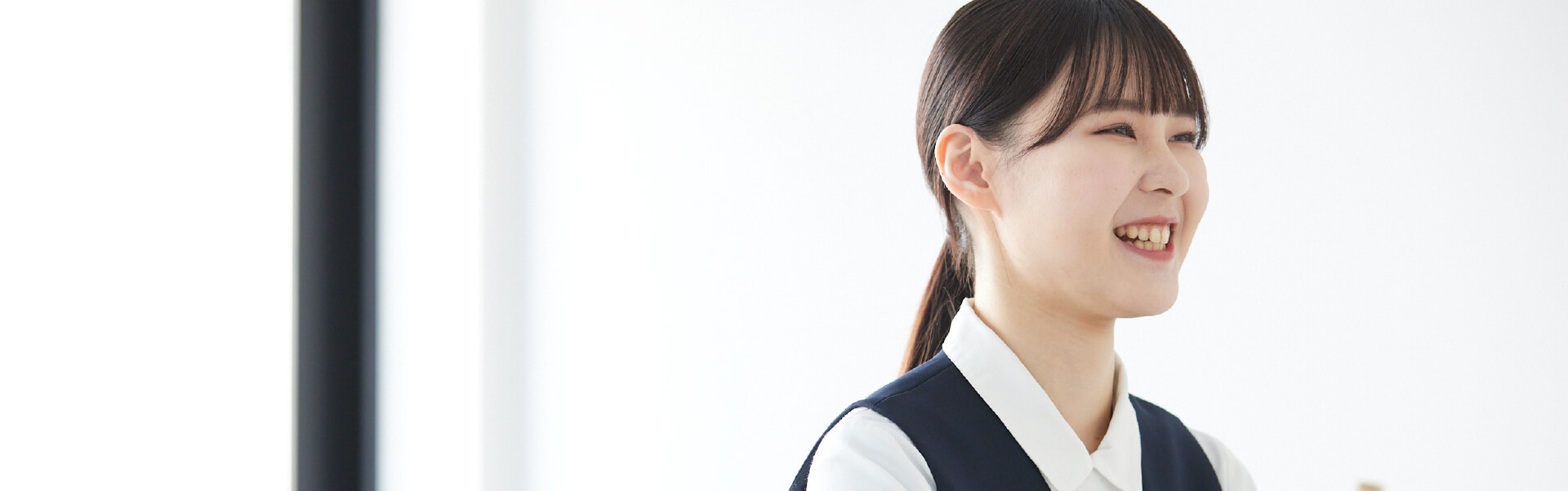 サービス店のカウンタースタッフとして活躍する水津千聡。2021年にエリア職で入社して以来、サービス店の店頭でお客さまのご要望に笑顔でお答えする日々を送っています。「お客さまからありがとうと、感謝の言葉をいただくことがうれしい」と語る水津が、カウンタースタッフの仕事とそのやりがいについて語りました。